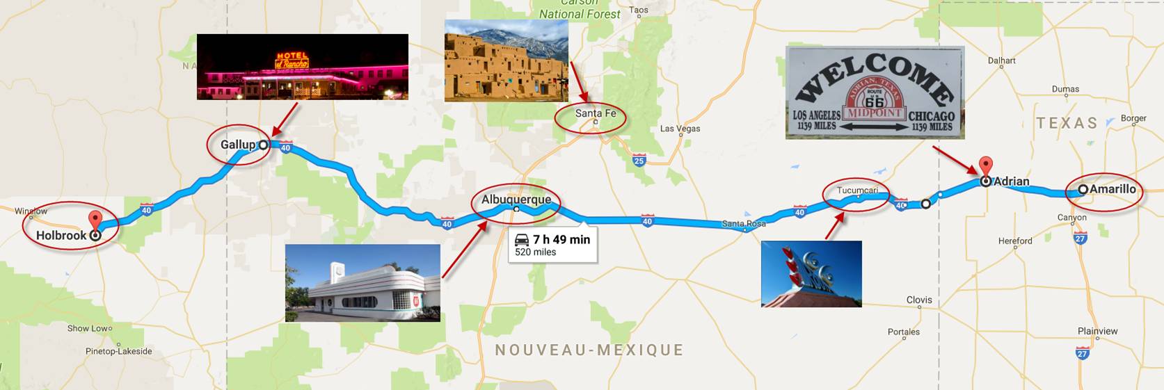 (Kimo theater, Route 66 Diner, El Vado Motel,Alamo) |