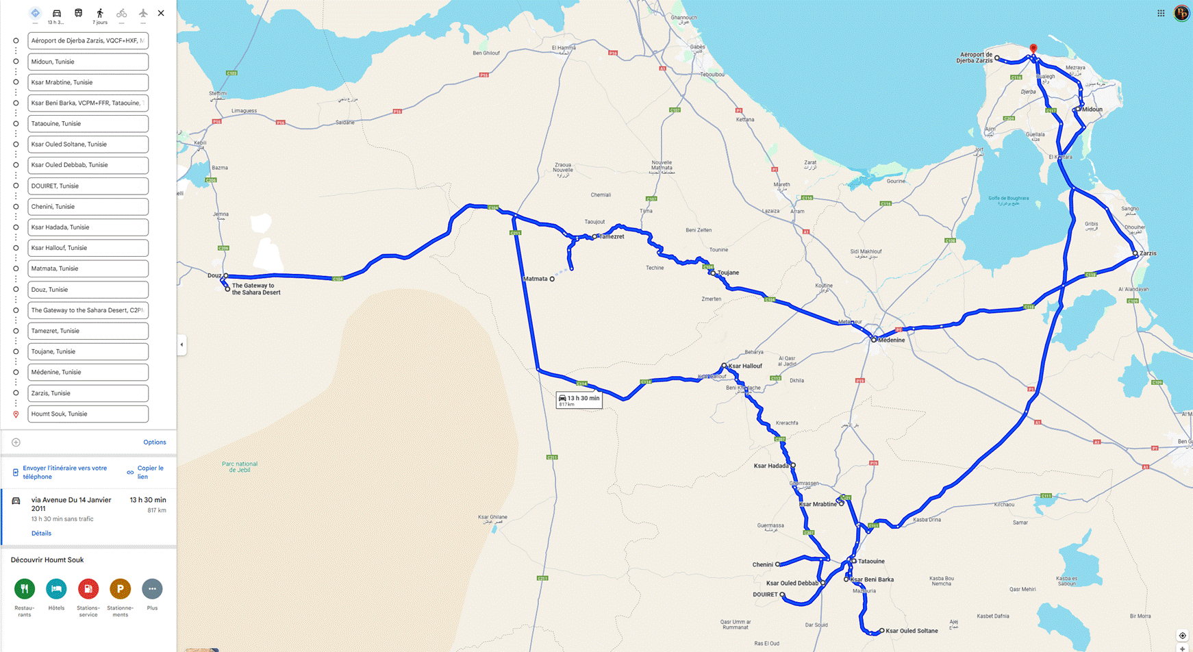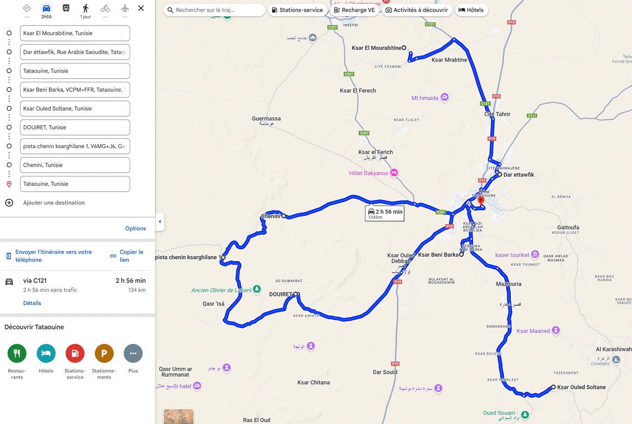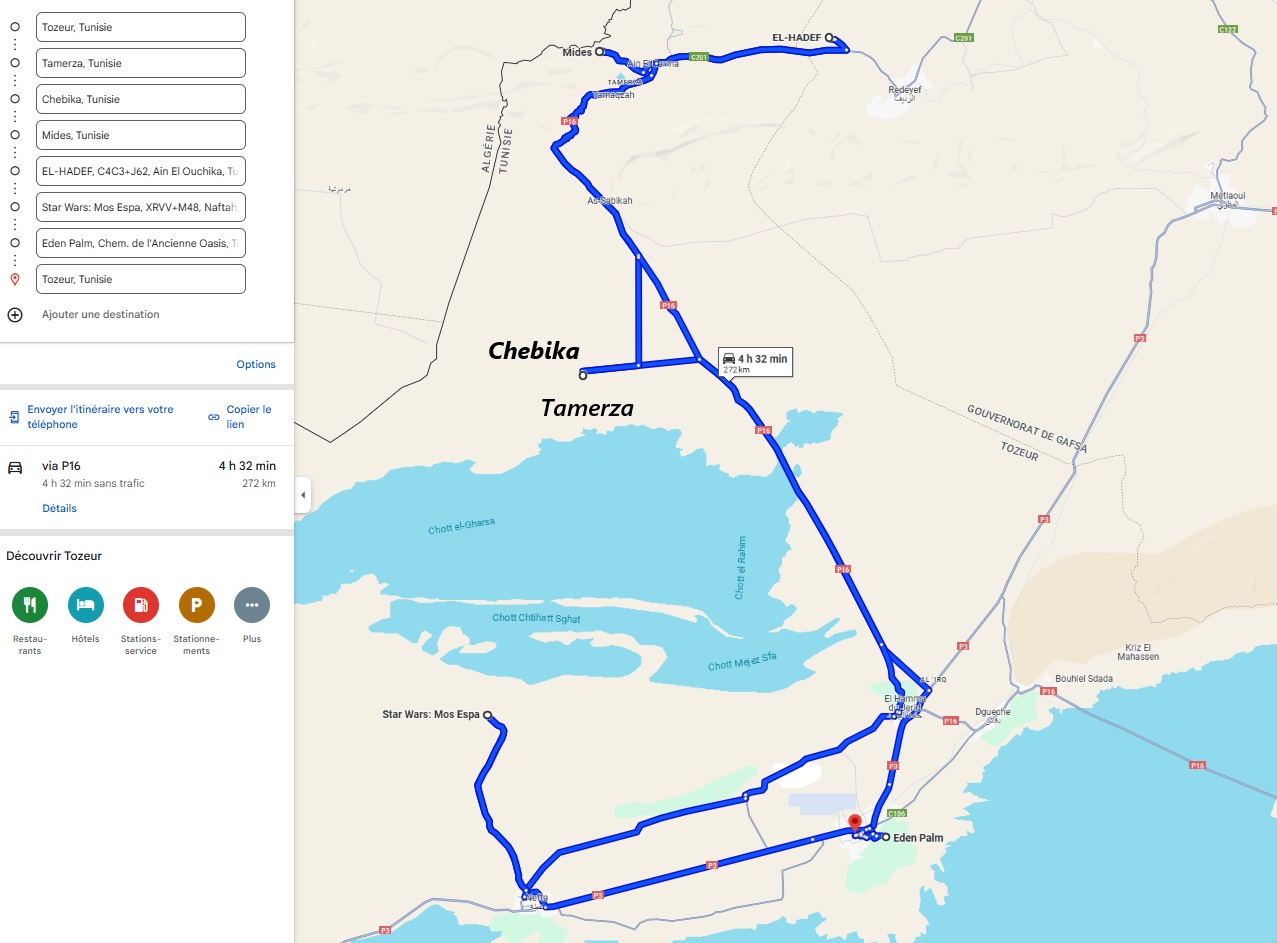 https://www.google.com/maps/dir/Houmt+Souk,+Tunisie/Fort+Ghazi+Mustapha,+Houmt+Souk,+Tunisie/El+Kantara,+Tunisie/Sebkhet+el+Melah,+Tunisie/Ksar+El+Mourabitine,+Tunisie/Ksar+Beni+Barka/Tataouine,+Tunisie/Ksar+Ouled+Soltane,+Tunisie/DOUIRET,+Tunisie/Chenini,+Tunisie/Toujane,+Tunisie/Matmata,+Tunisie/Zeraoua,+Tunisie/Douz,+Tunisie/Houmt+Souk,+Tunisie/